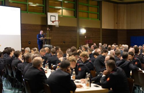 Feuerwehr Schorndorf übt Absturzsicherung auf DAV-Baustelle