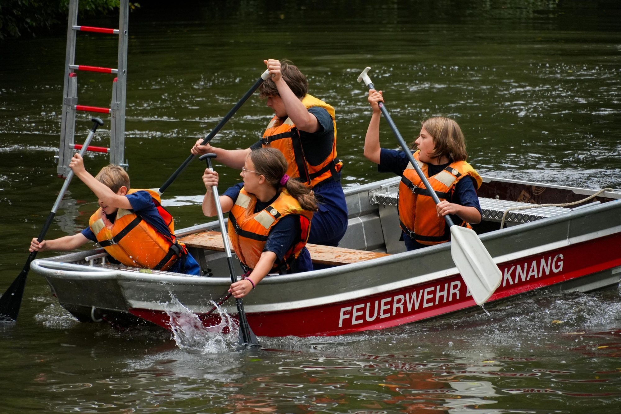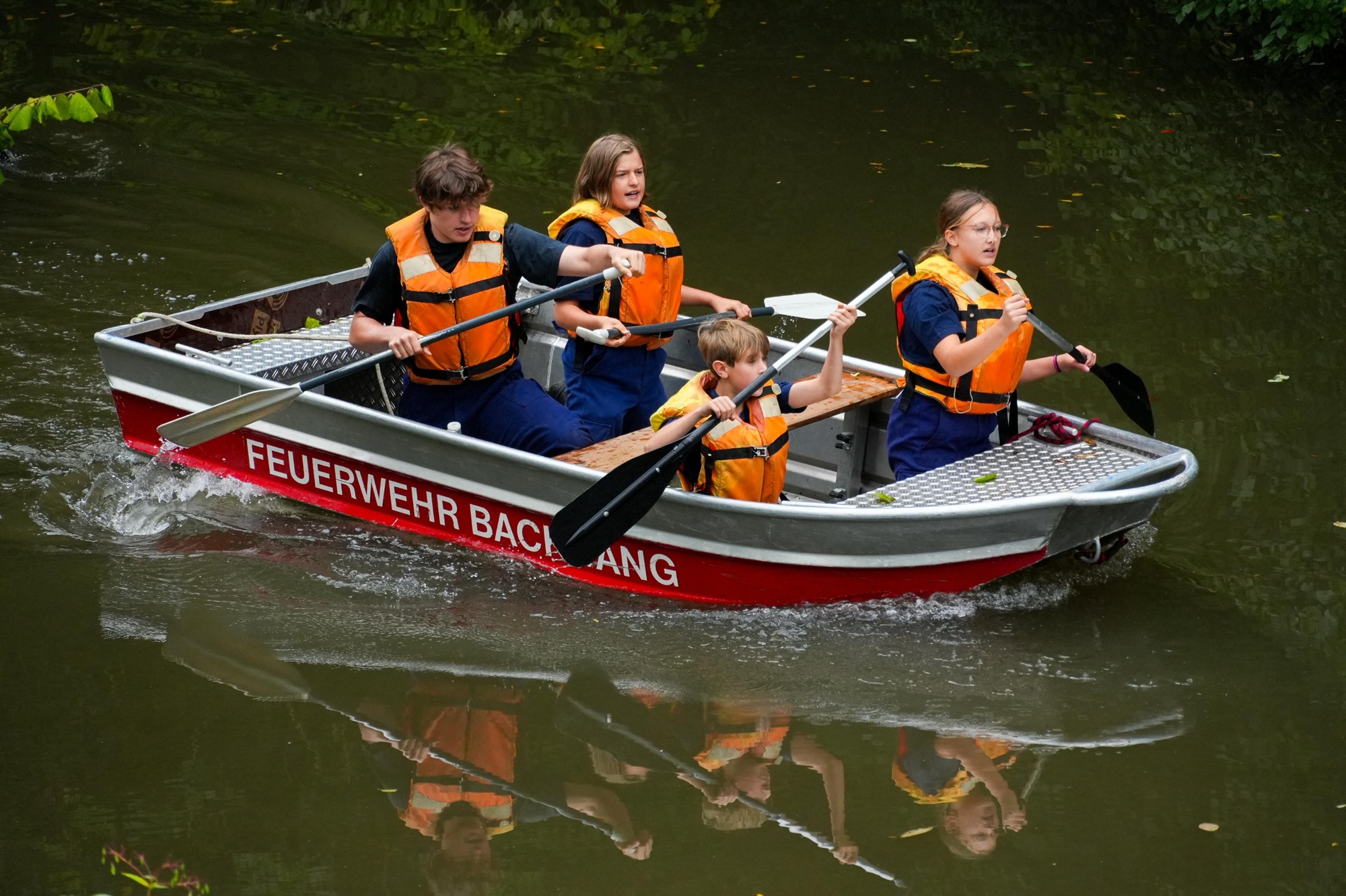 Das Rennen wurde mit zwei Alubooten der Feuerwehr Backnang ausgetragen. Pro Boot paddelten vier Personen eine rund 400 Meter lange Strecke: Nach ca. 200 Metern musste das Boot um eine an einer Brücke befestigte Steckleiter gewendet werden. Auf dem Rückweg wartete das Ziel – und dort galt es, einen über den Fluss gespannten Kanister abzuklatschen.