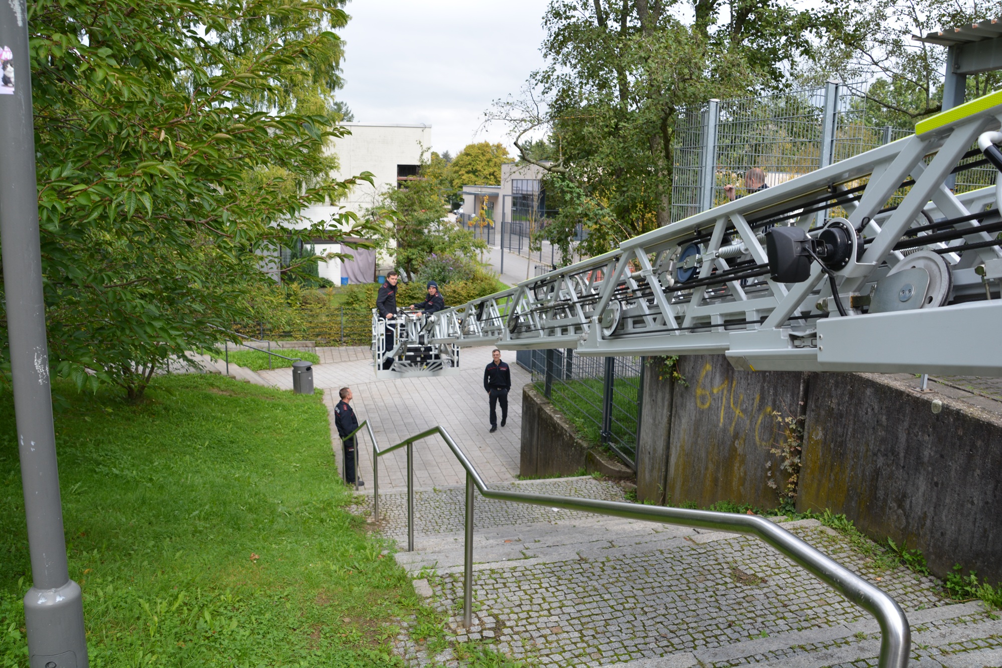 In den folgenden Terminen wurden zahlreiche Stellproben und praktische Übungen im gesamten Stadtgebiet durchgeführt. Dabei trainierten die Teilnehmenden die Einsatzgrundsätze und Sicherheitsfunktionen der Drehleiter in unterschiedlichsten Lagen, unter anderem in Vertikal-, Längs- und Querneigung, mit und ohne Korbarm.