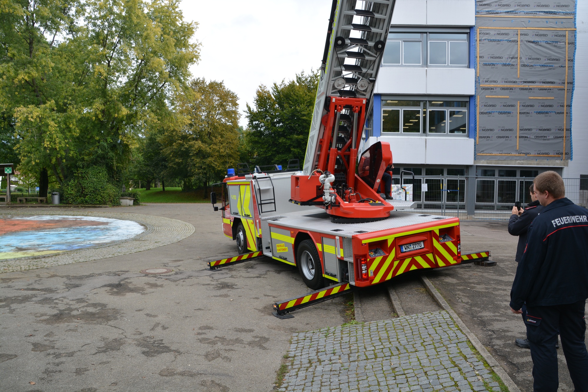 Neben den theoretischen Grundlagen wie Unfallverhütungsvorschriften, Aufgaben der Fahrzeugbesatzung und Baurecht stand die praktische Ausbildung klar im Vordergrund. Bereits am ersten Samstag wurde die Drehleiter vermessen, hierbei wurden Überhänge, Freistandsgrenzen, Fahrzeugmaße, Abstützmaße und weitere Kennzahlen ermittelt.