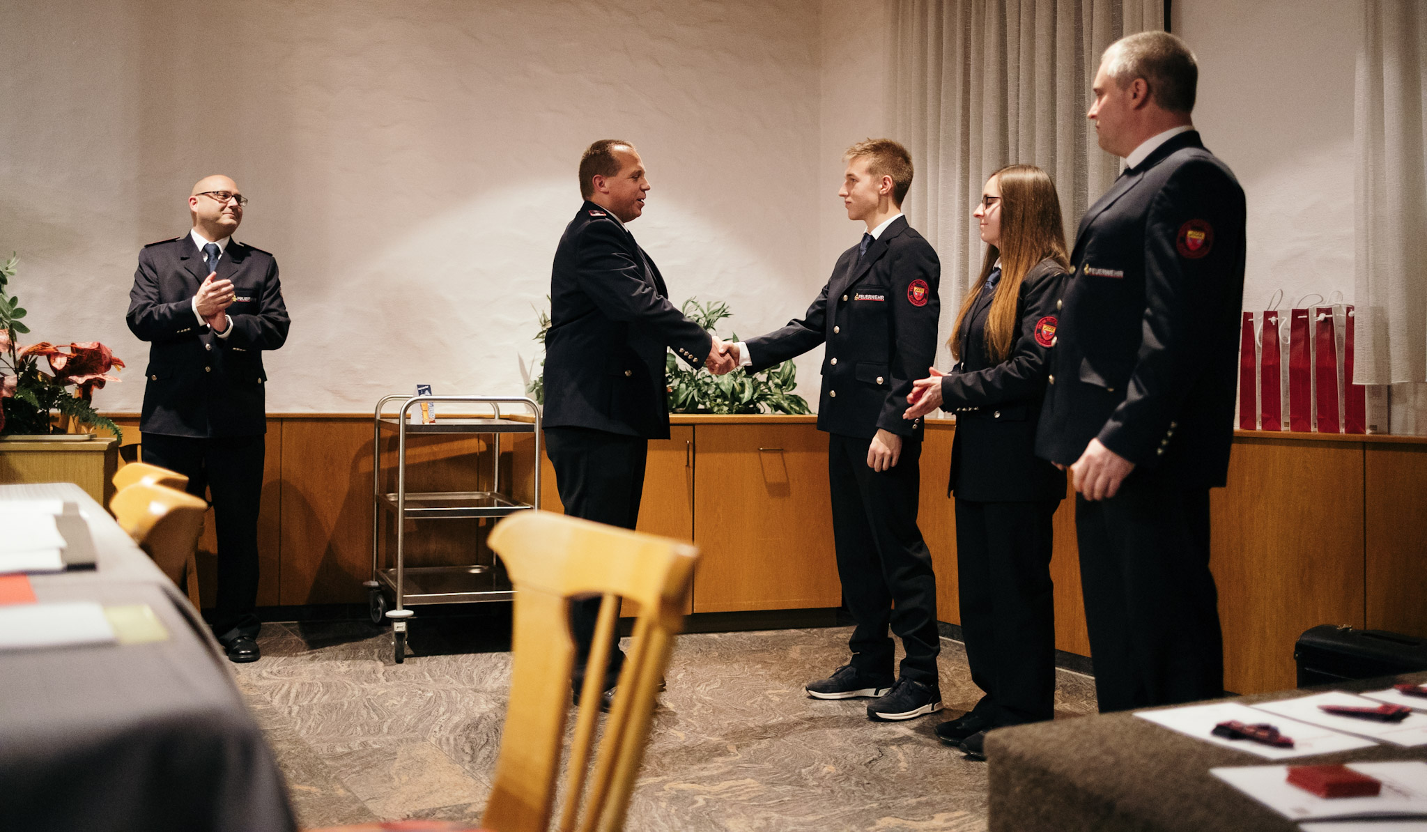 Aufgrund der Weiterbildung durch Lehrgänge und Dienstzeit wurden Markus Bareiß und Mika Gertz zum Feuerwehrmann, Thorsten Gertz zum Oberfeuerwehrmann Niklas Jilek und Sandor Weiss zum Hauptfeuerwehrmann und Jochen Rapp zum Hauptlöschmeister befördert.