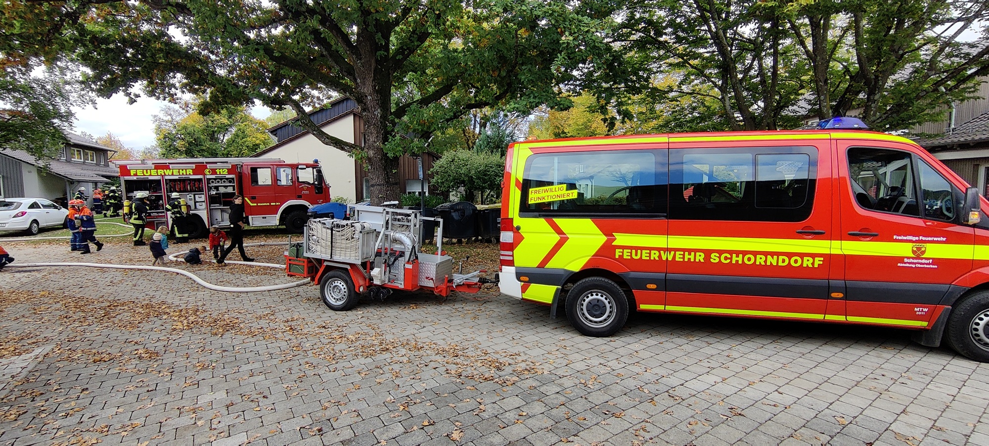 Die Menschenrettung aus dem Dachgeschoss und einen Löschangriff über das Dach übernahmen die hinzu alarmierten Kräfte der Abteilung Stadt mit der Drehleiter und einem weiteren Löschfahrzeug.