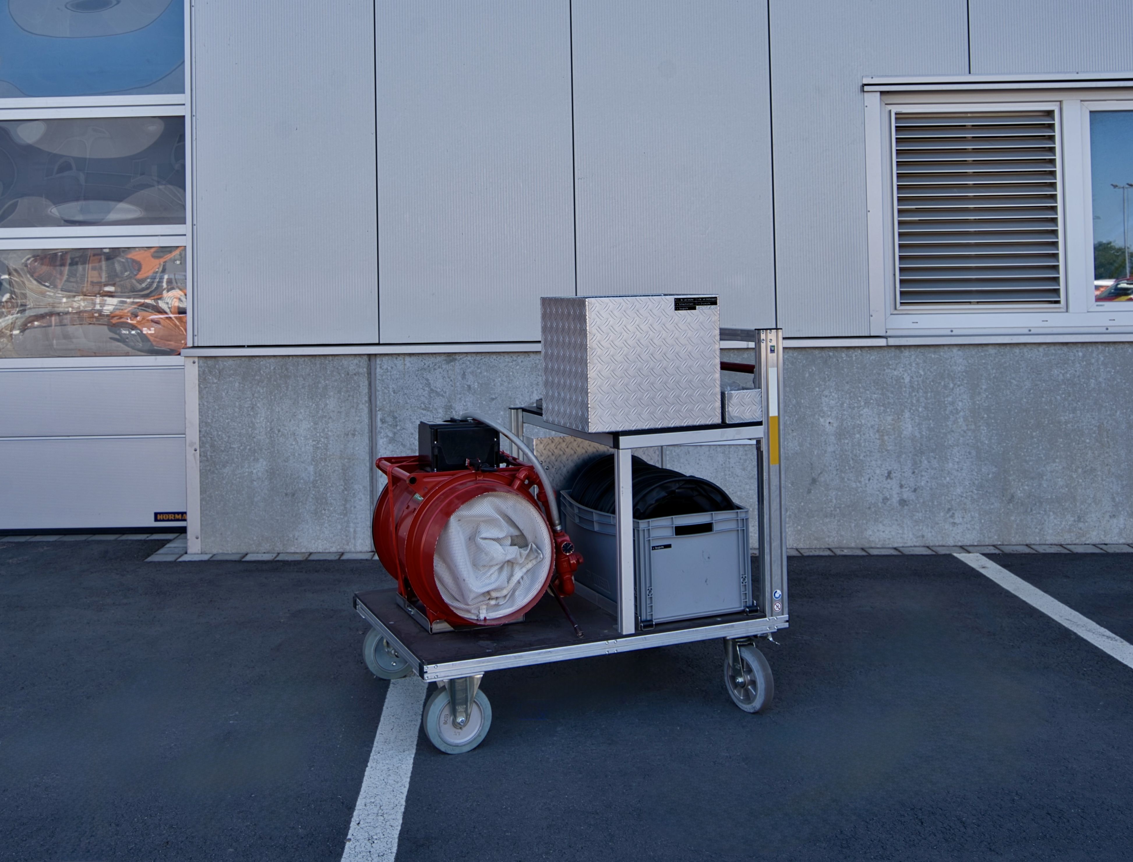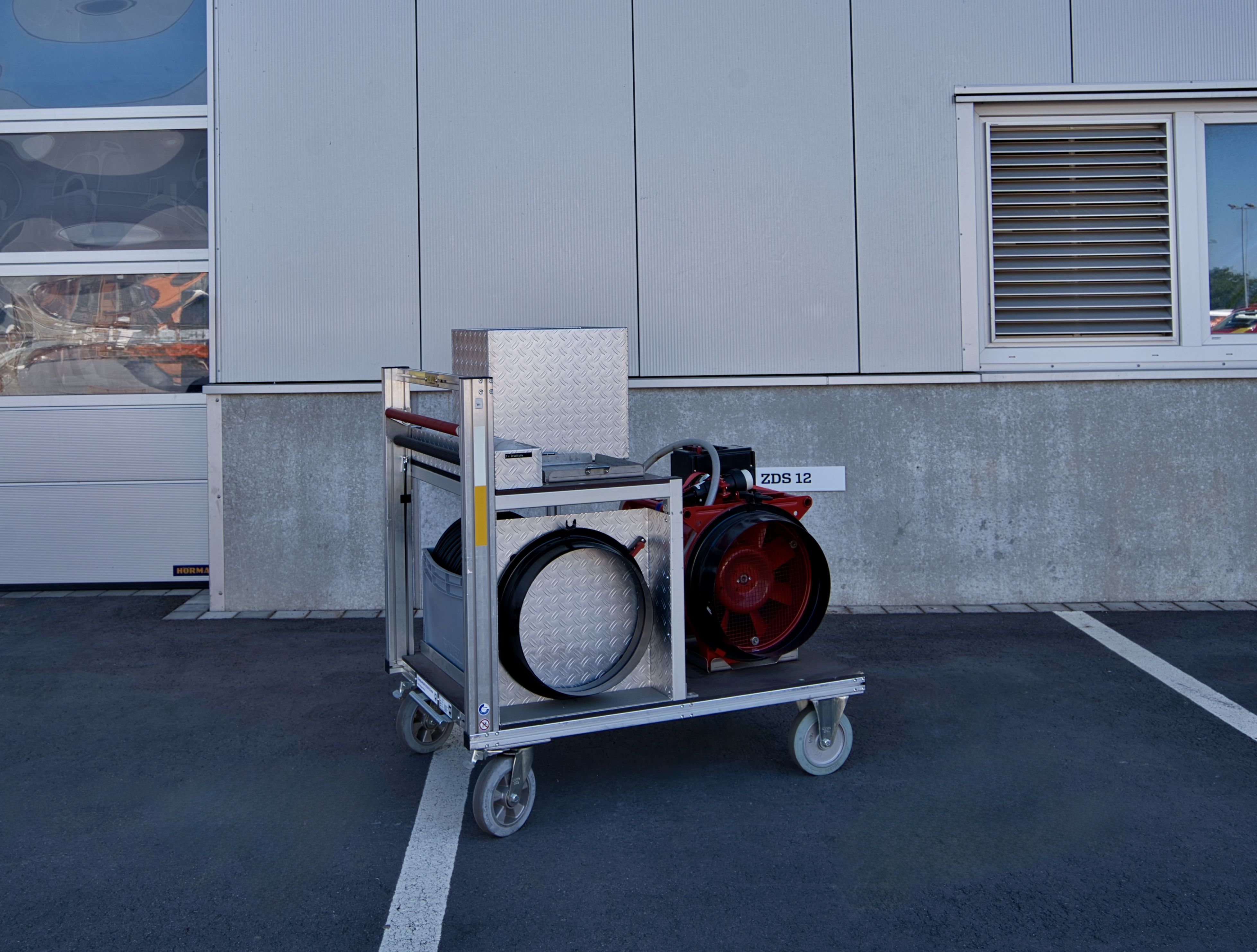 - Unterstützt die Belüftung verrauchter Gebäude oder die Entlüftung von Gasen mit einem kombinierten Be- und Entlüftungsgerät, Lutten und Schaumvorsatz.