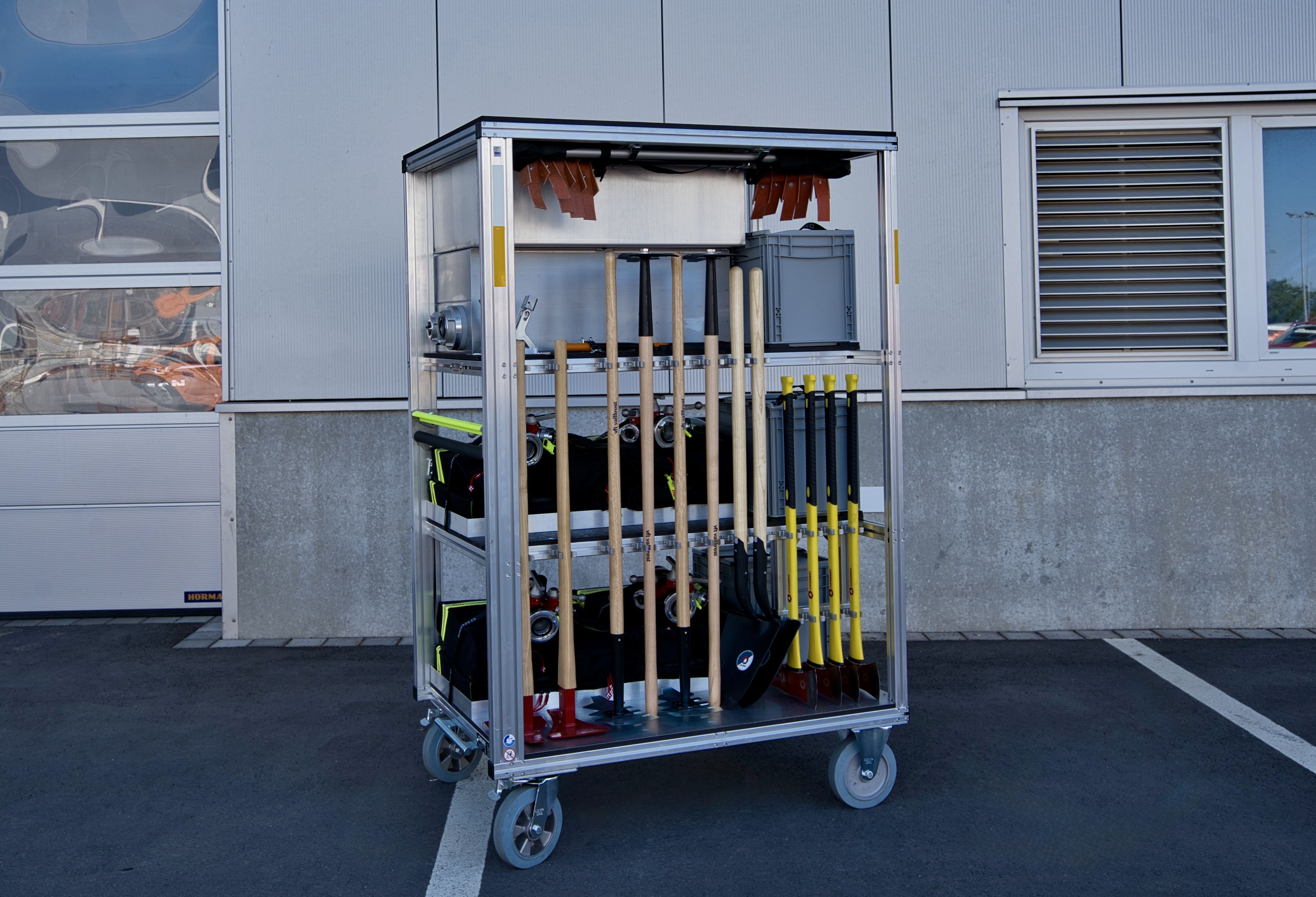 - Dieser Rollwagen enthält verschiedenstes Material für die Bekämpfung von Wald- und Flächenbränden.